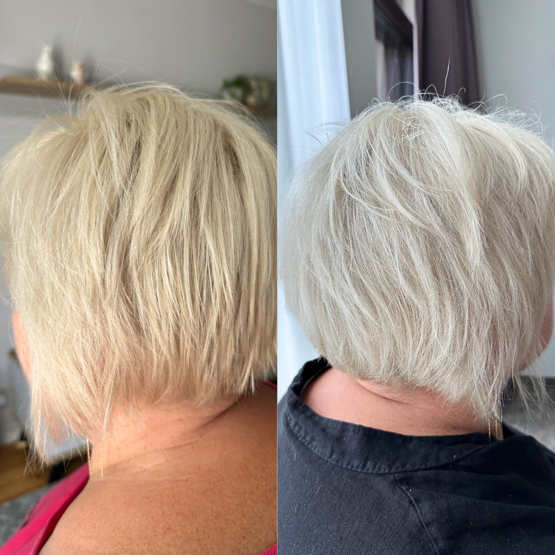 Ingredientele exclusive pe care le conțin produsele nu doar elimină tonurile galbene, ci și uniformizează culoarea părului, oferă o strălucire deosebită, hidratează în profunzime și hrănesc firul de păr. De asemenea, componentele contribuie la reducerea căderii părului și a vârfurilor despicate. Primele rezultate sunt vizibile încă de la prima utilizare.