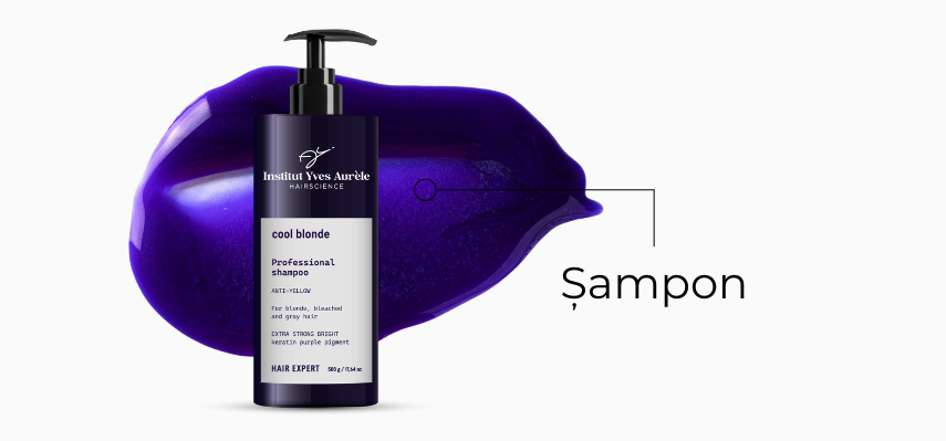 Șampon Cool Blond (500 ml): Udați părul, apoi aplicați șamponul pe scalp și masați ușor, distribuind produsul pe întreaga zonă a rădăcinilor. Clătiți.